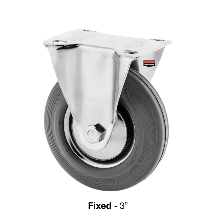 The Titan Hardware 3", 4" and 5" rubber wheels set increases mobility on most hard surfaces such as gravel, tiles, or pavement and have a total maximum load rating of 300kg, 400kg and 500kg.