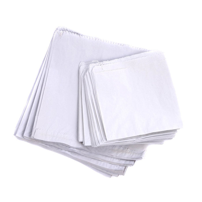 500x 1W 2W Paper Bags White Flat Sandwich Pie Take Away Takeaway Lolly String 3F
