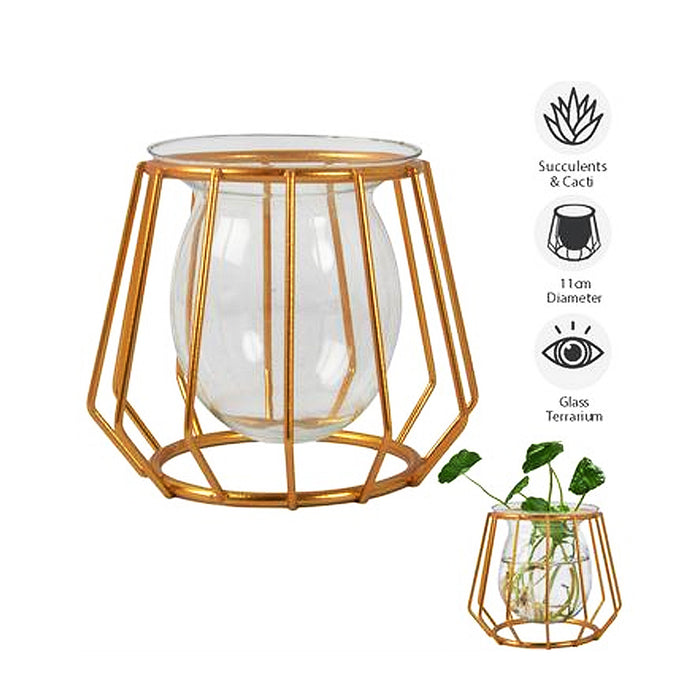 Terrarium Vase Gold Stand Glass Bulb Wire Frame Home Garden Succulents Modern