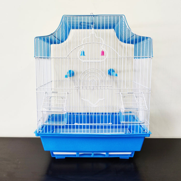 | Title | Bird Cage Small Medium Metal Frame Square Roof White Blue 37cm x 28cm x 46cm |