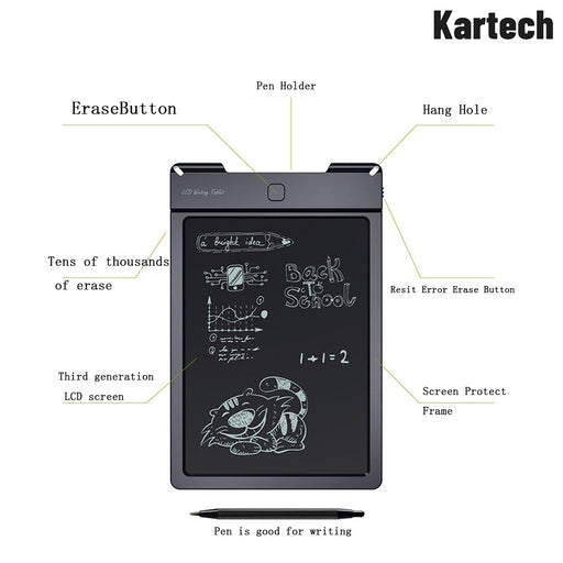 from $19.99Description Kartech LCD Writing Tablet for Kids Digital 5 9 13" Drawing Board Pad Electronic Package Contains 1 x LCD Writing Tablet Feature...