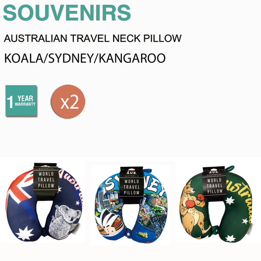 2x Australian Souvenirs Travel Neck Pillow Plane Airplane U Shape Washable Gift