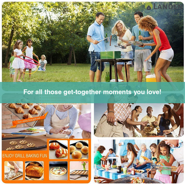 Landen non-stick grill mats are perfect when cooking at home, and also ideal for cookouts in parks and campgrounds to provide an instantly clean surface to cook on.