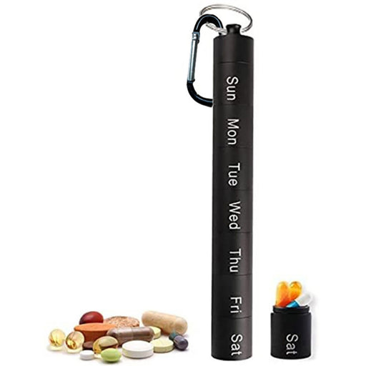 Description Lecluse Metal Small Pill Box Organizer 7 Day Weekly Aluminium Alloy Portable Waterproof Emergency Keychain Pill Holder Medicine Case...