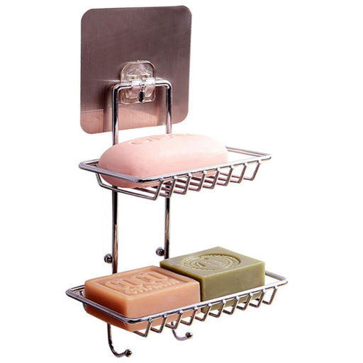 Lecluse 2 Tier Stainless Soap Box Holder Dish with Hooks Steel Bar Holder for Sh