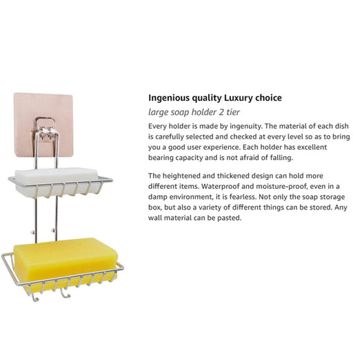 Description Lecluse 2 Tier Soap Dish With Hooks Stainless Steel Bar Soap Holder for Shower Wall Package Contains 1 x Stainless Soap Box Hold...
