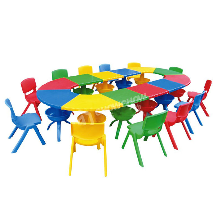 - This kids' table and chair set is an ideal size for lunch, art projects or story time for six or more