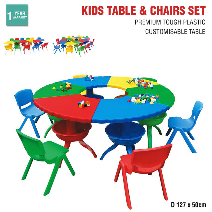 Kids Table and Chair Set Children Activity Toddler Large Plastic 6 Chairs 127x50