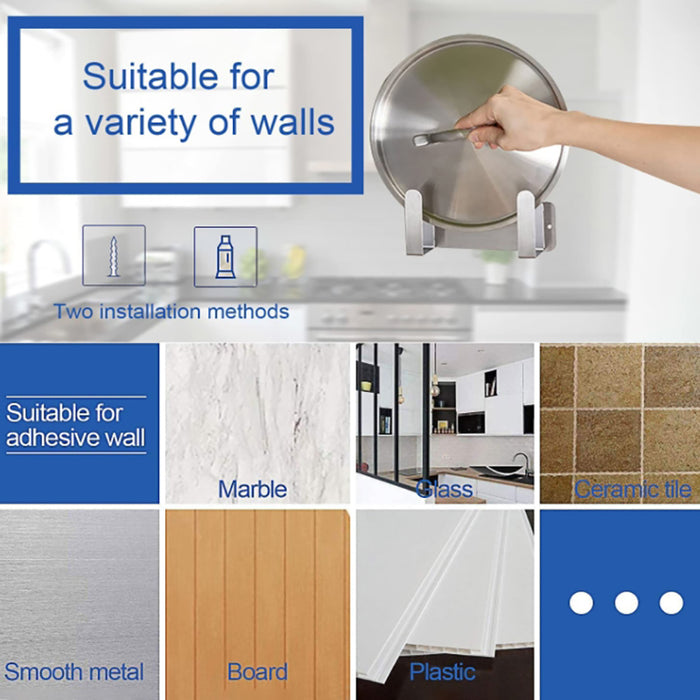 Lecluse Pot Lid Rack Stainless Lid Shelf Wall Mounted 304 Stainless Steel Pan Li
