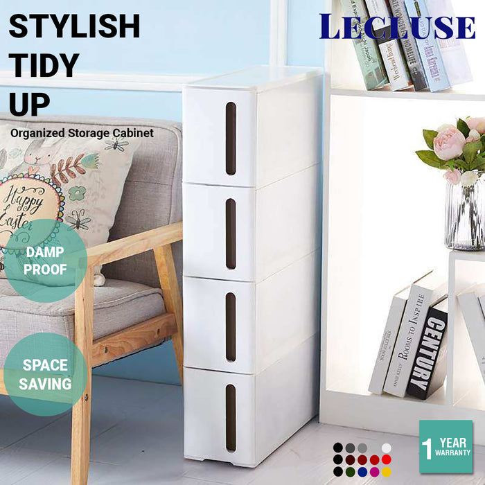 Lecluse Rolling Storage Drawer Cabinet Slim Plastic Cart On Wheel 4-Tier
