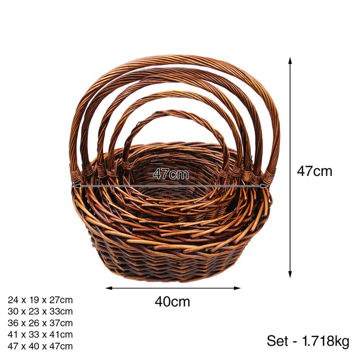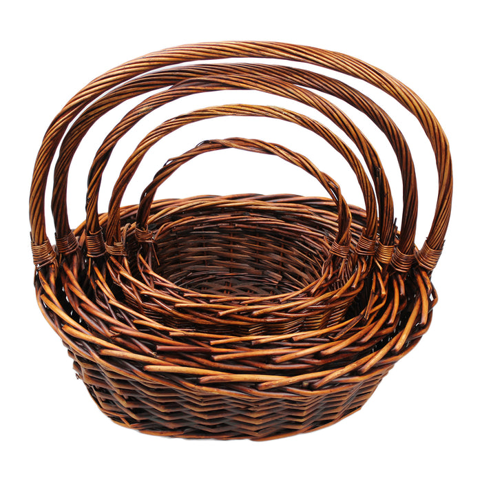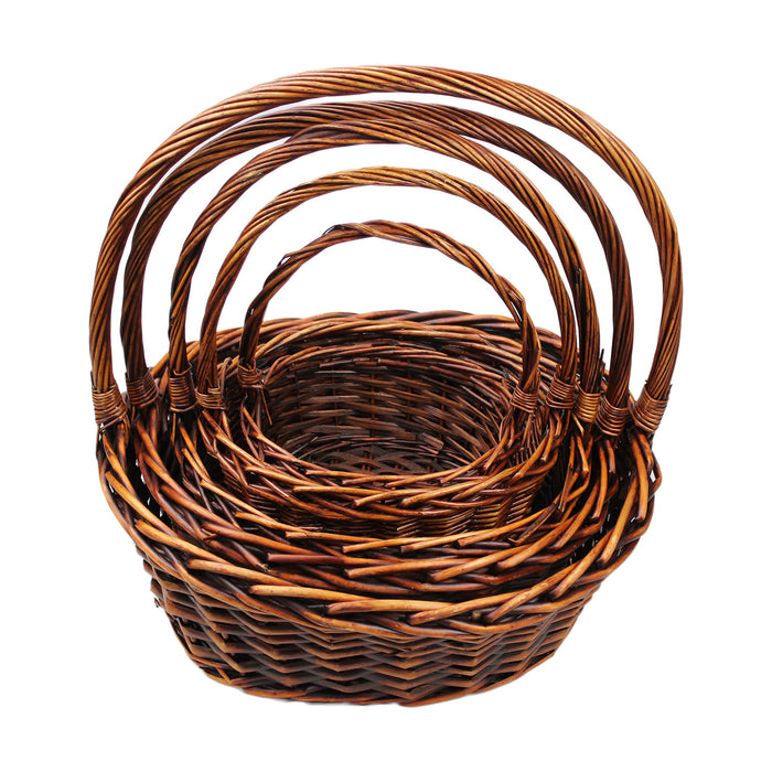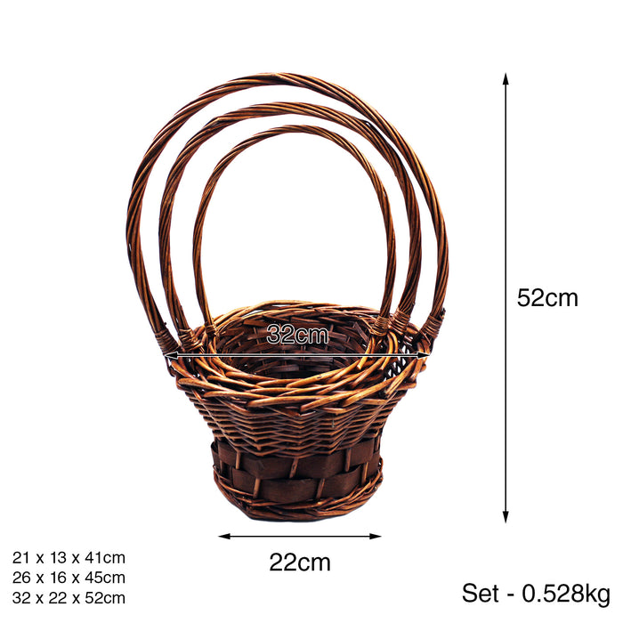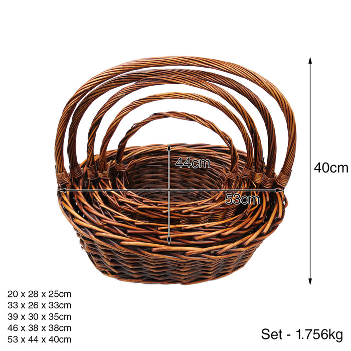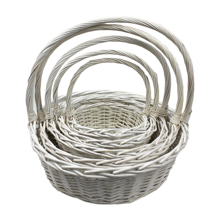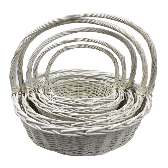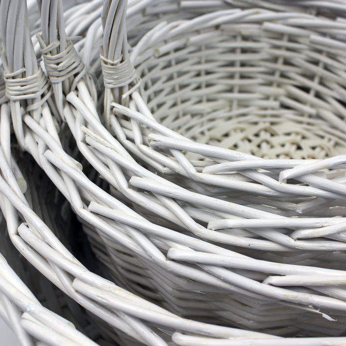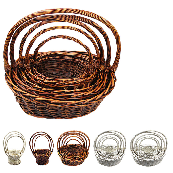 Wicker Basket Set Cane Hamper Picnic Handle Small Large White Brown Vintage Gift