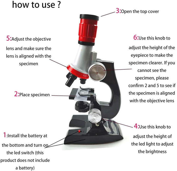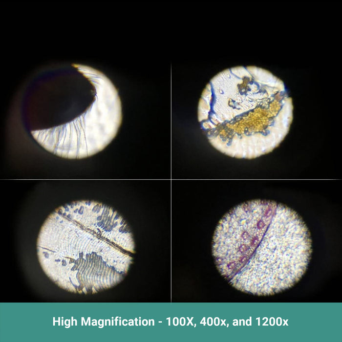 - HIGH MAGNIFICATION - Kids microscope set provides high magnification for educational applications, 100X, 400x, and 1200x Magnification.