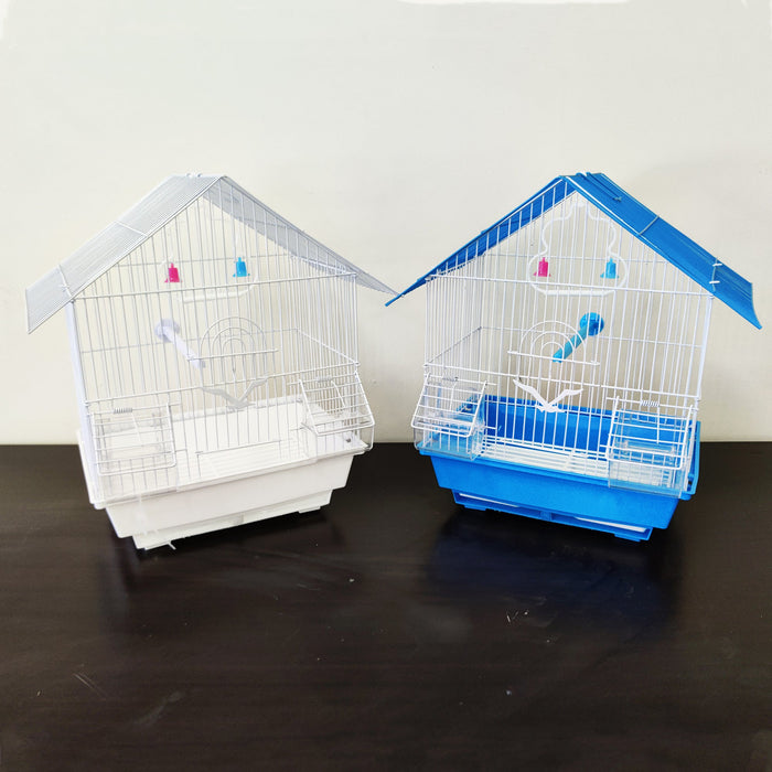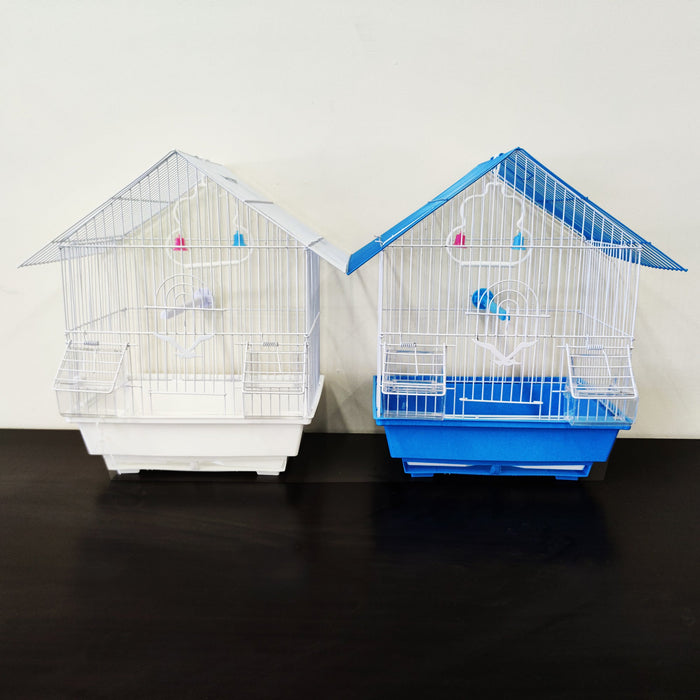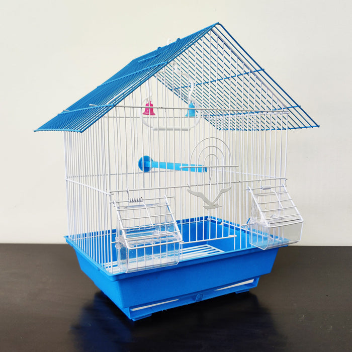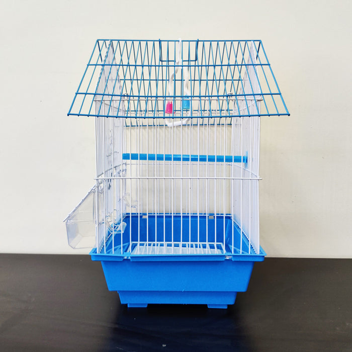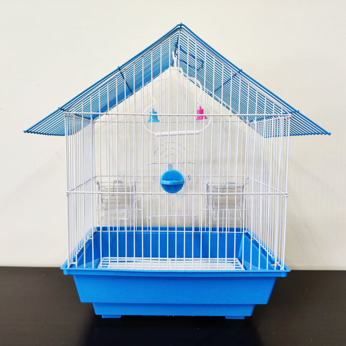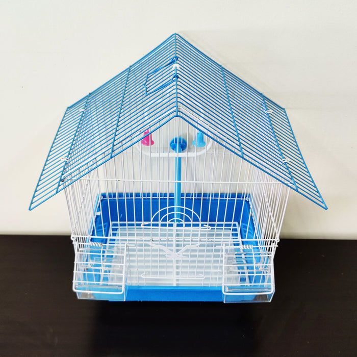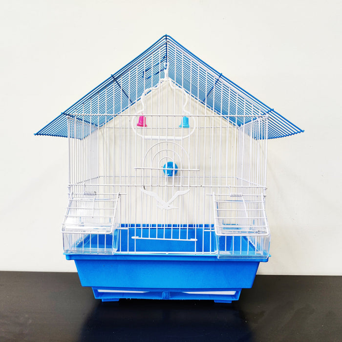 Bird Cage Small Medium Metal Frame Angled Roof Blue 29.5cm x 22.3cm x 38.5cm