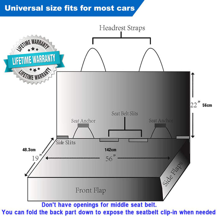 • LIFETIME WARRANTY - 124cm L × 142cm W universal size. This car seat cover for dogs is backed by a lifetime warranty for defect on materials and workmanship. 100% money back guarantee of complete satisfaction