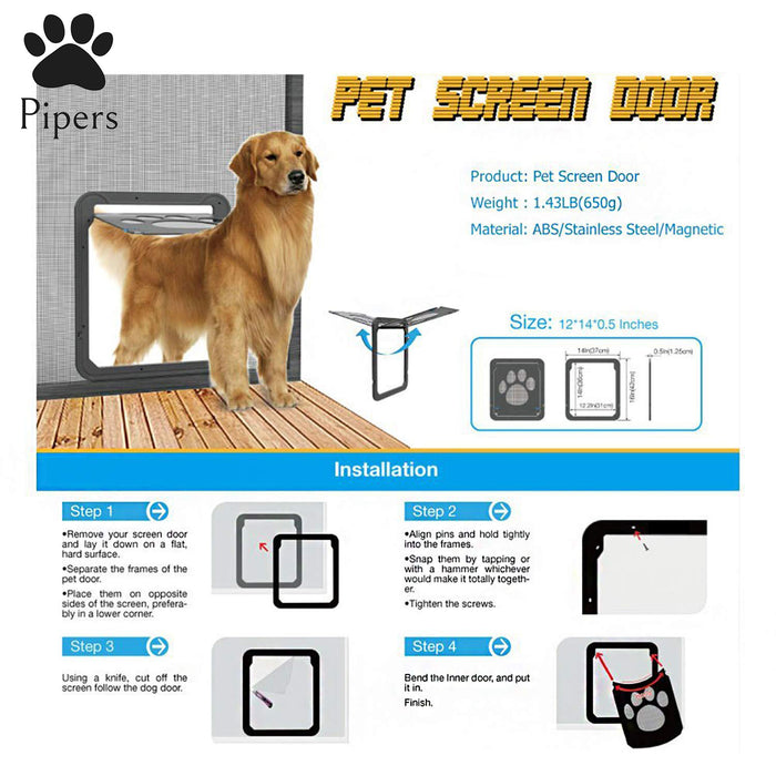 Pipers Pet Screen Door Dog Cat Flap Security Large Window Puppy Automatic Lock L