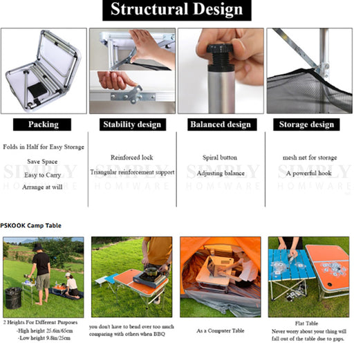 Crocox Aluminum Alloy Folding Table Camping Carrying Handle Aluminum Adjustable