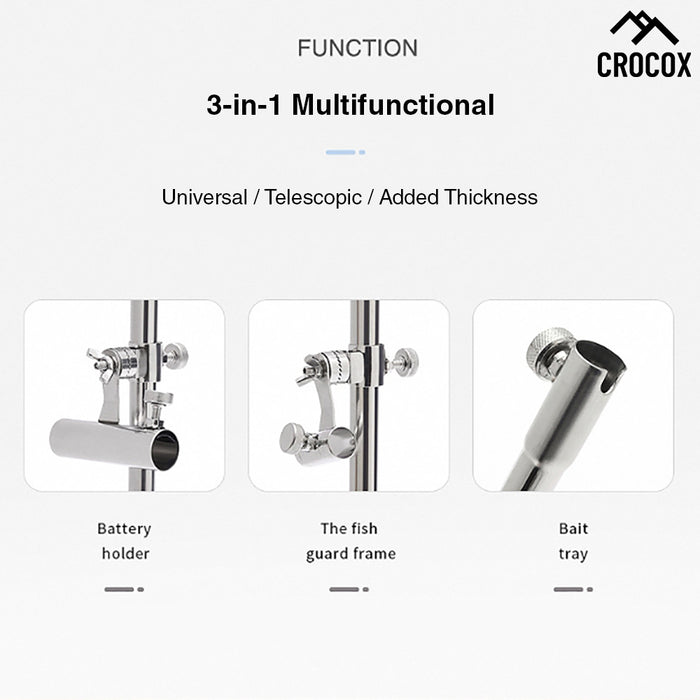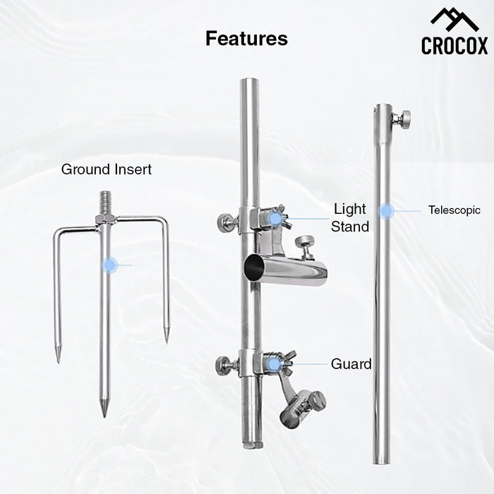 - 【Full Stainless Steel Design & Multi-functional】Say Bye-bye to alloy material, Crocox fishing rod holder is made of high-quality stainless steel material, durable and rust-free, visible thickness and excellent load bearing capacity, it’s not easily deformed, to meet different fishing places like bridge pier, fence, boat,etc.