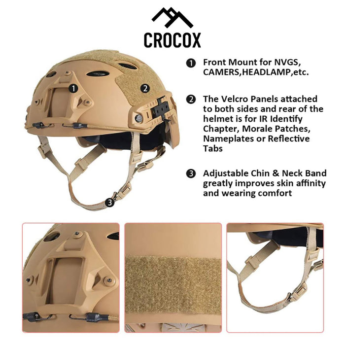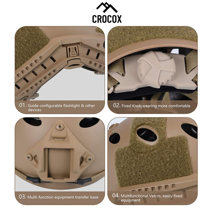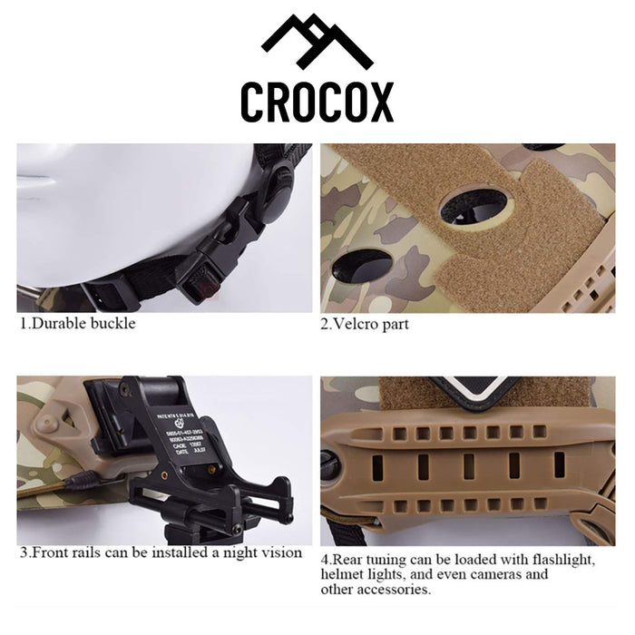 Crocox airsoft helmets Constructed of high-quality ABS engineering plastics feature durable and sturdy. Helmet internal full use of high-quality foam feature lightweight and comfortable
