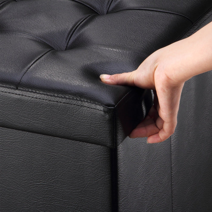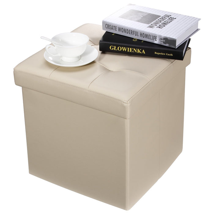Put the lid on, it immediately turns into a seat cube, footrest or cube storage. The tufted top and brown leather-like or linen upholstery is surely always a tasteful addition to your furniture and home decor.