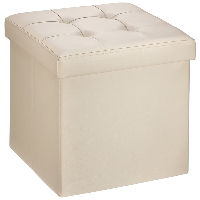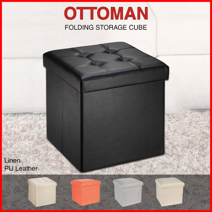 Folding Ottoman Storage Cube Footstool Stool Blanket Box Pouf Faux Leather Linen
