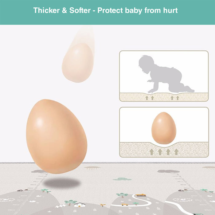 - Use on 2 Sides of the Mat - The baby play mat has an interesting pattern on both sides, with the pandas playing in the forest at the front of the mat and the animal car race at the back of the mat, give free rein to your children's imagination.