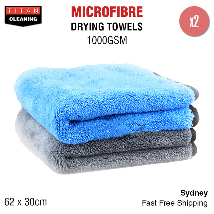 2x 1000GSM Microfibre Car Drying Towel Cleaning Cloth Microfiber Glass 62x30cm
