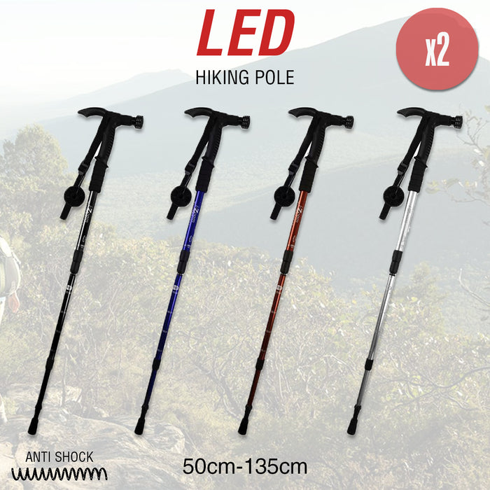 2x Hiking Trekking Poles Walking Stick Aluminium Camping Adjustable Anti Shock