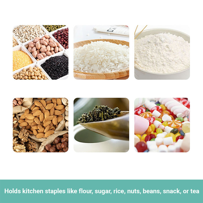 - Perfect for pantry organisation, perfect for store baking supplies, cheerios, oats, pasta, cereal, rice, flour, sugar, coffee, tea, snacks, nuts.