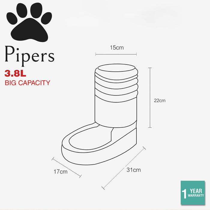 3.8L Pipers Pet Automatic Water Food Dispenser Dog Cat Drinking Feeder Bottle