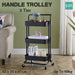 3 Tier Handle Wheel Trolley Bathroom Kitchen Storage Shelf Rolling Rack Cart AU