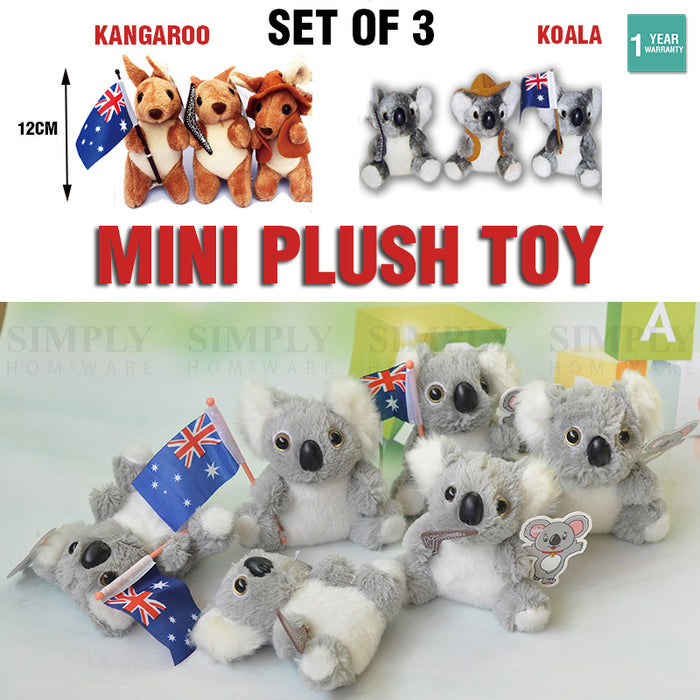 3x Australian Souvenir Kangaroo Koala Mini Plush Toy Stuffed Kids Gift Aussie AU