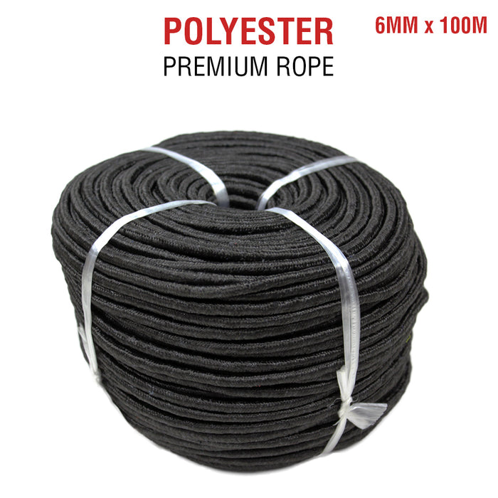 6mm x 100M Polyester Rope Braid Marine Climbing Trailer Winch Black Boat Anchor