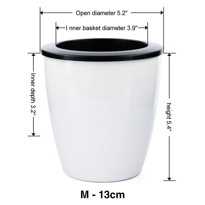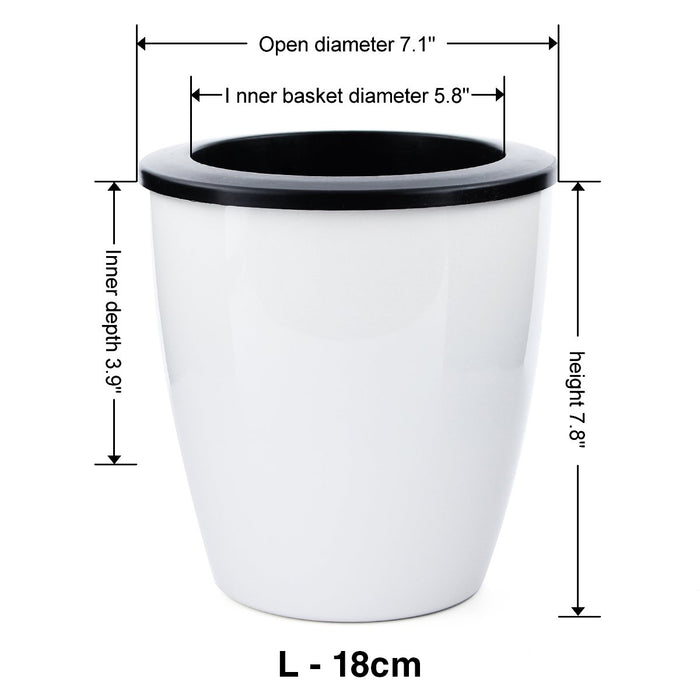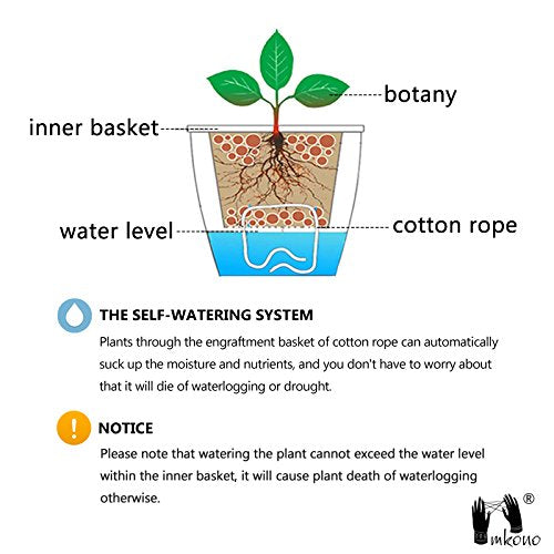 - Please note that watering the plant cannot exceed the inner basket and the water level within the flower pot is 0.4In, it will cause plant death of waterlogging otherwise. Size L:Inner basket diameter 5.8". Open diameter 7.1". Inner depth 3.9". height 7.8". Mkono is a registered trademark and our product is professional manufacturing and sole selling.