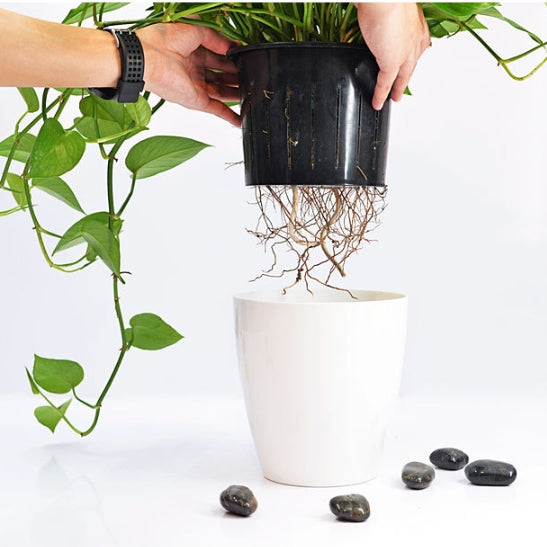 - Thanks to the double-layer design that allows excess water to be stored in the bottom of this planter pot and provided to your plant as needed.