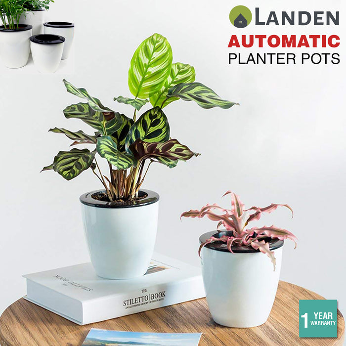 1/6x Landen Self Watering Plant Pots White Planters Bulk Plastic Large Saucer Tr