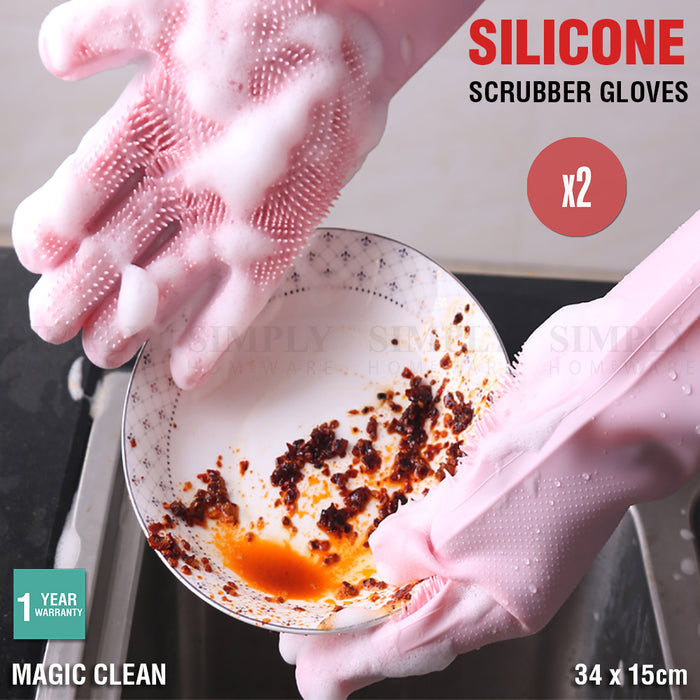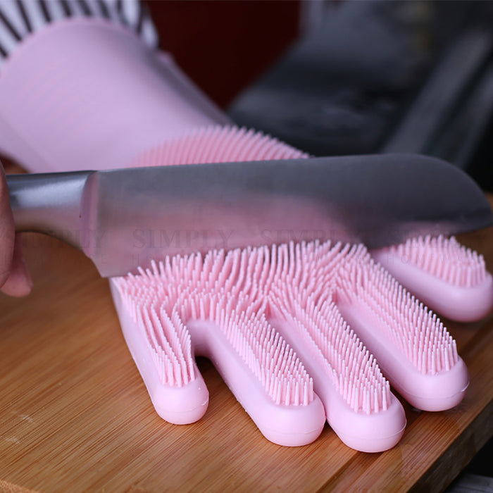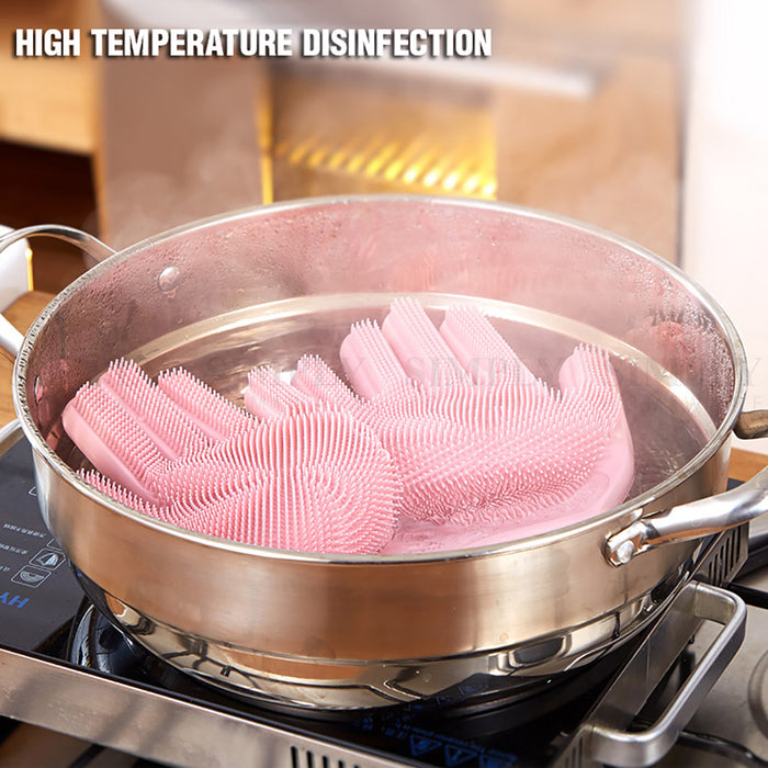 Silicone Scrubbing Gloves Magic Dish Scrubber Washing Cleaning Sponge Rubber