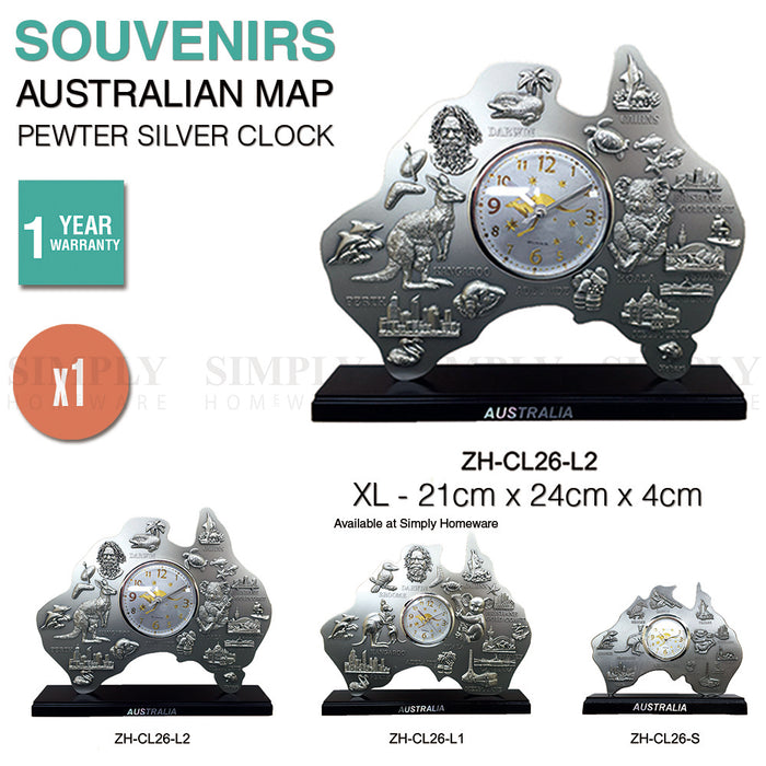 Australian Souvenirs Map Clock Movement Bedside Silver Aussie Gift Bulk XL