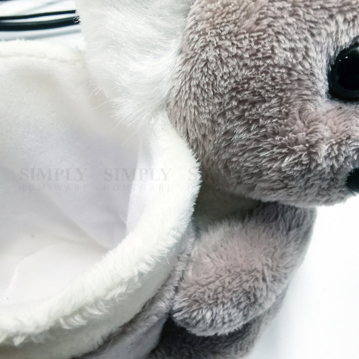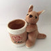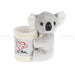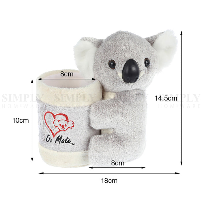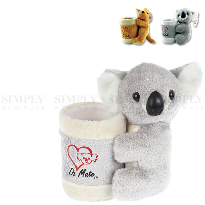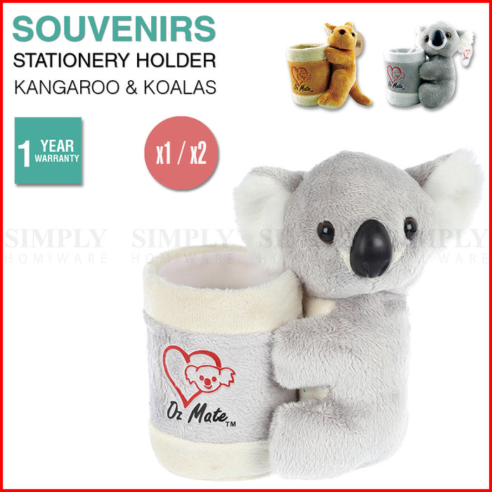 Cute plush toy koala and kangaroos hugging a cup that holds stationery, pens, utensils, etc.