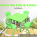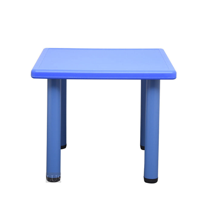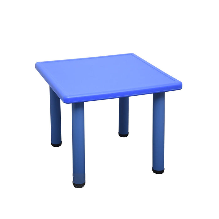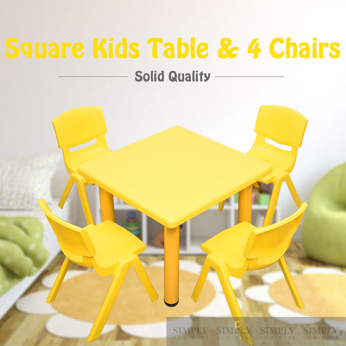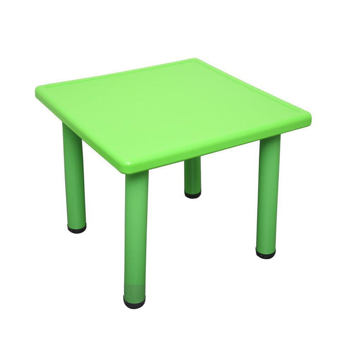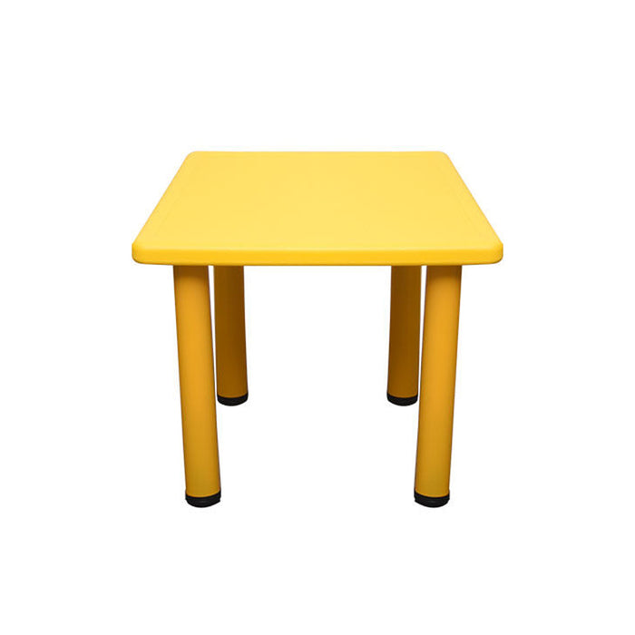 Suitable for 4 children, this square kids table can be used both indoors or outdoors. Constructed of easy-to-clean durable plastic with metal underneath, this kids table is very durable and long-lasting. The four chairs come in red, yellow, green, and blue colours.
