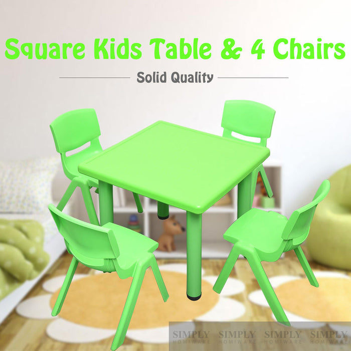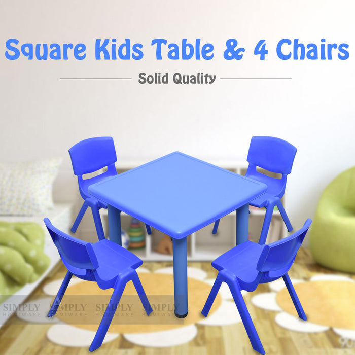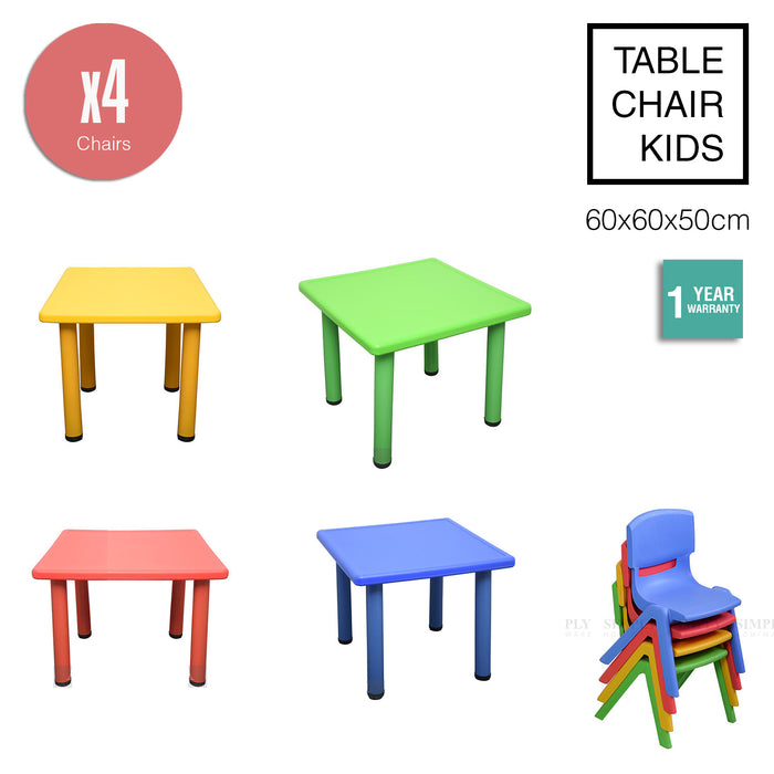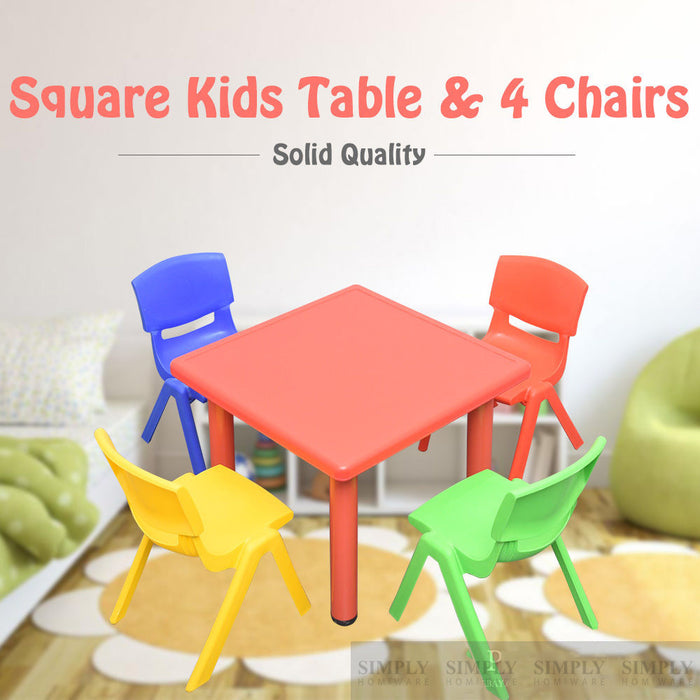 Kids Table Children 4 Chairs Plastic Activity Set Play Outdoor Large Red 60x60cm