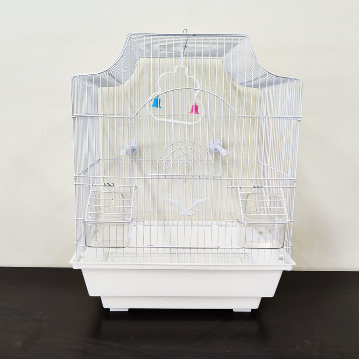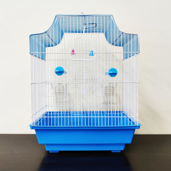 Title Bird Cage Small Medium Metal Frame Square Roof White Blue 37cm x 28cm x 46cm