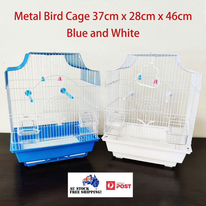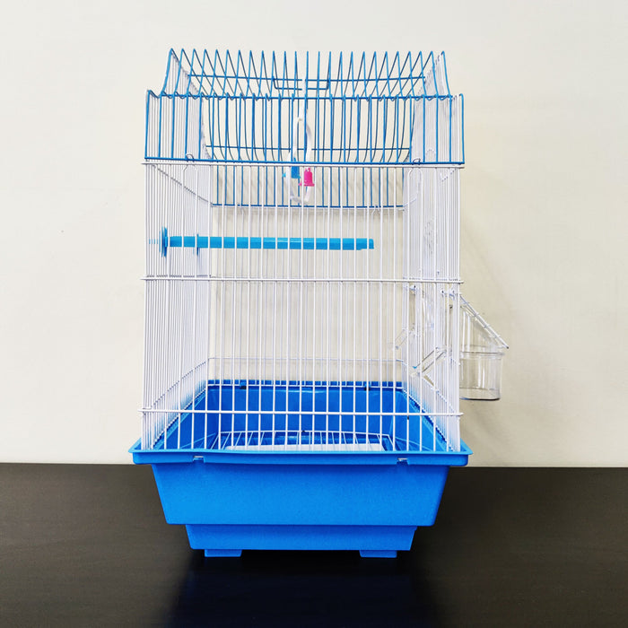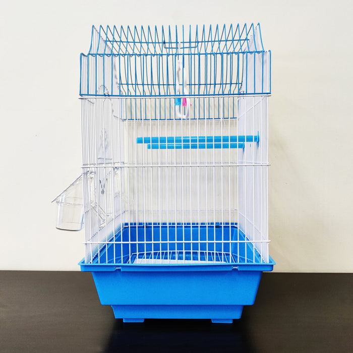 Bird Cage Small Medium Metal Frame Square Roof White Blue 37cm x 28cm x 46cm