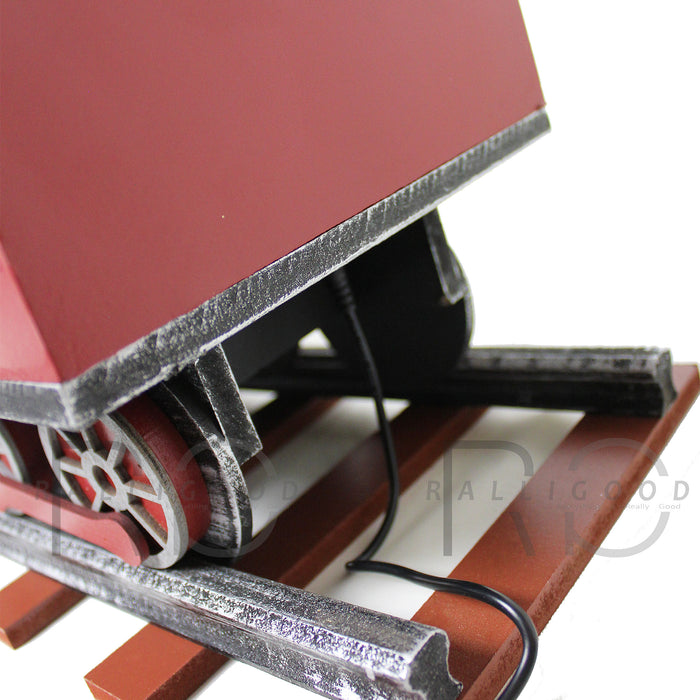 When plugged in, LEDs will light up the little diorama inside the cabin and blow snow much like a snow globe. If the music is not to your tastes, the train also comes with button to turn off the music, leaving only the lights and the blowing snow.