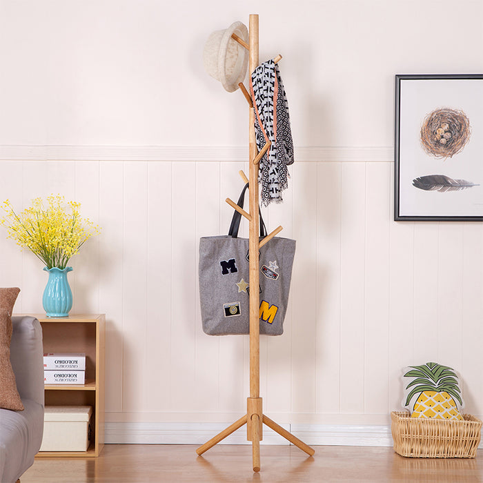 Great for hats, coats, scarves, handbags and more! Conveniently grab what you need just right before you step out of the door. This Wooden hanger stand features a three legged design and offers multiple hooks and branches to hold your goods. With a timeless and stylish design, it will easily match any interior.