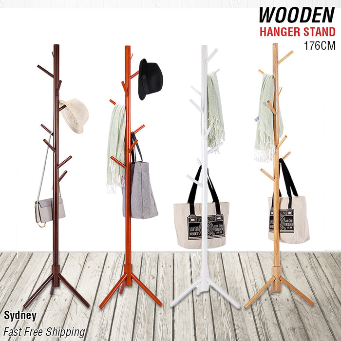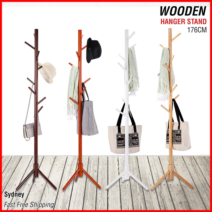 Wooden Coat Stand Rack Clothes Hanger Hat Tree White Jacket Bag Umbrella Hook