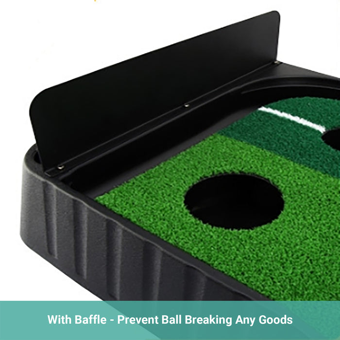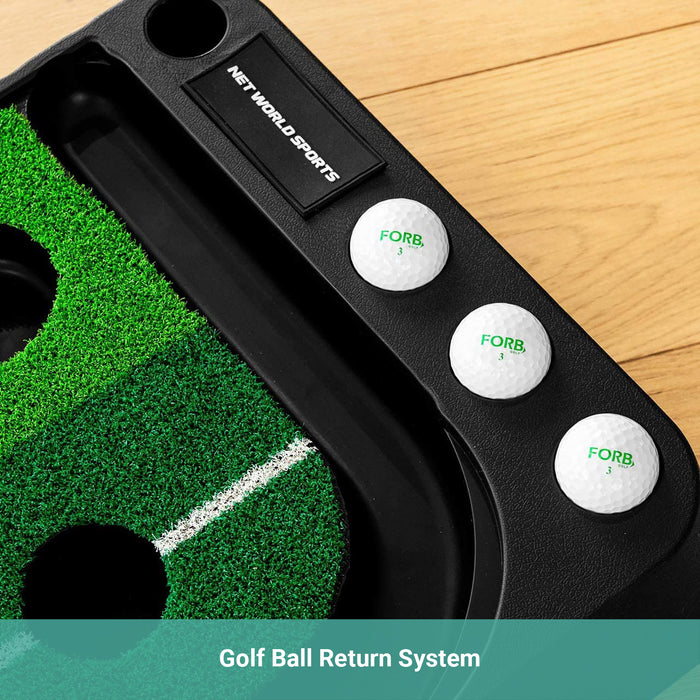 The innovative ball return system ensures you don’t need hundreds of balls to practice your putting. Whether you make the putt or miss it long or wide, the ball will drop into the system & return to where it came from.