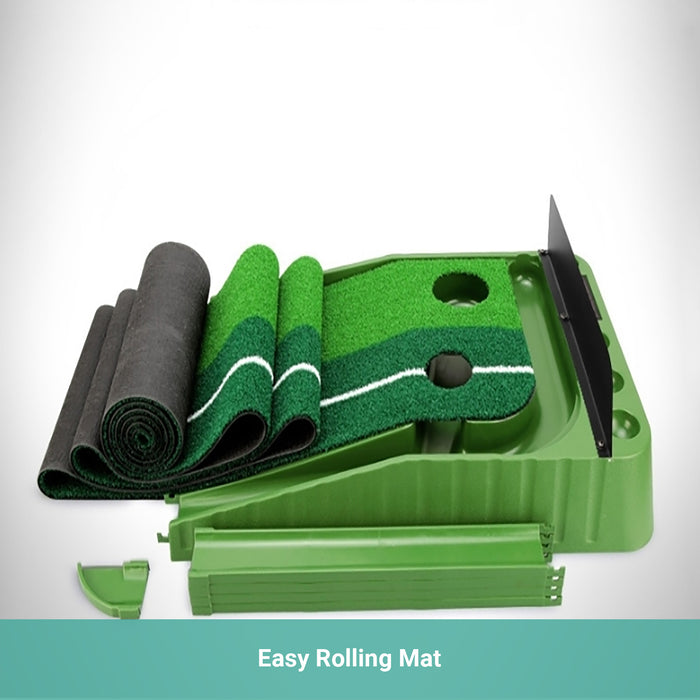 When fully extended, this putting mat measures 10ft in length, giving golfers plenty of room to perfect their putting techniques. For easy storage, the mat can be simply rolled away.