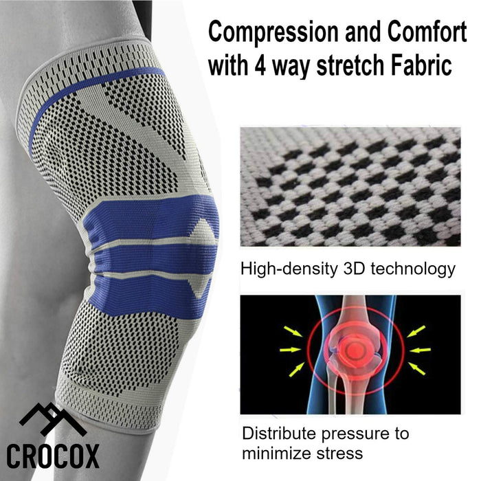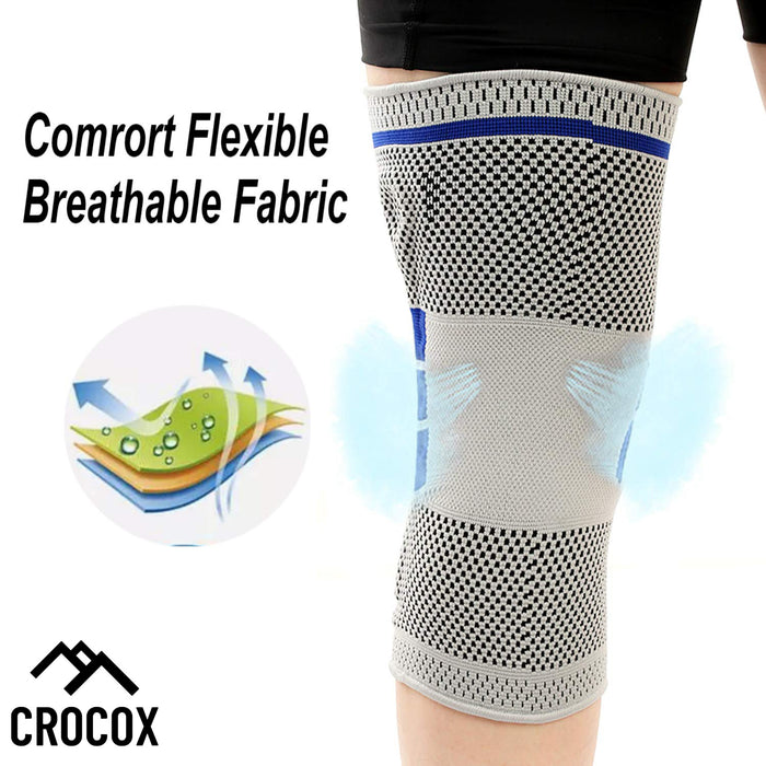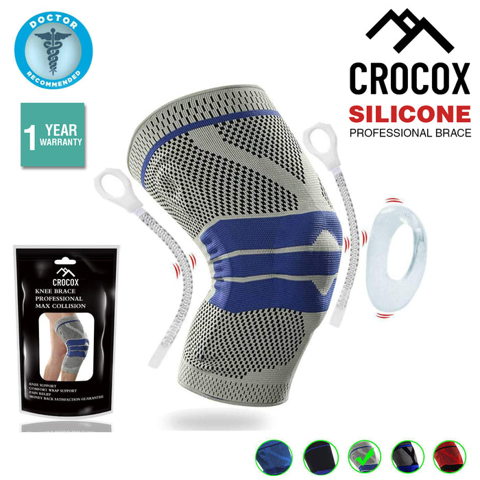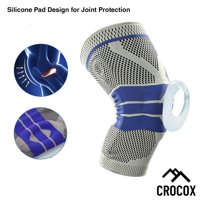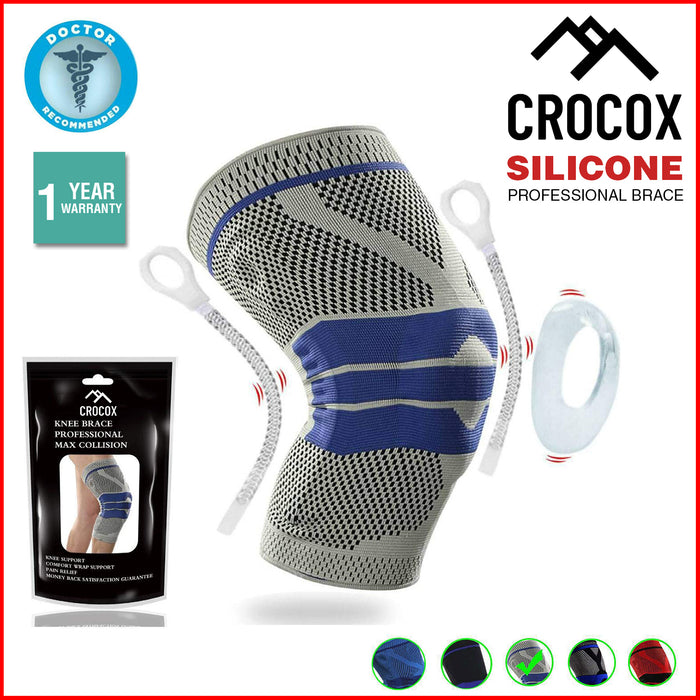 Crocox Knee Braces Support Strap Compression Sleeve Silicone Pad M L XL Adult