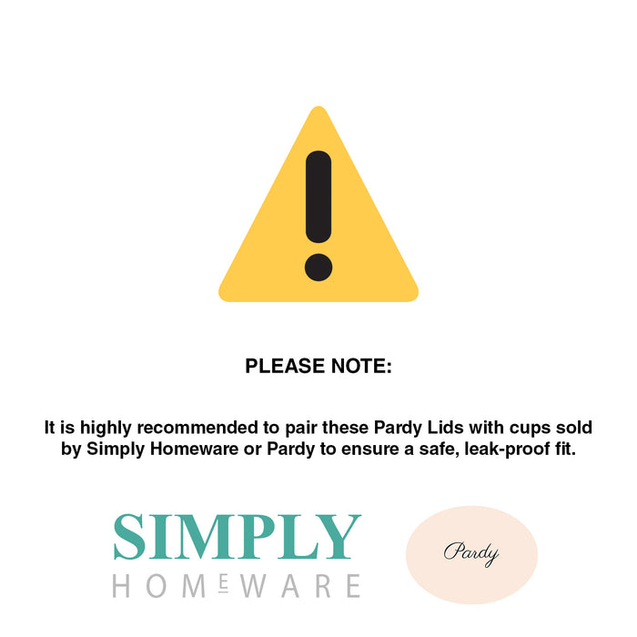 Note: It is highly recommended to pair these Pardy Lids with cups sold by Simply Homeware or Pardy to ensure a safe, leak-proof fit.