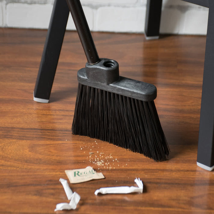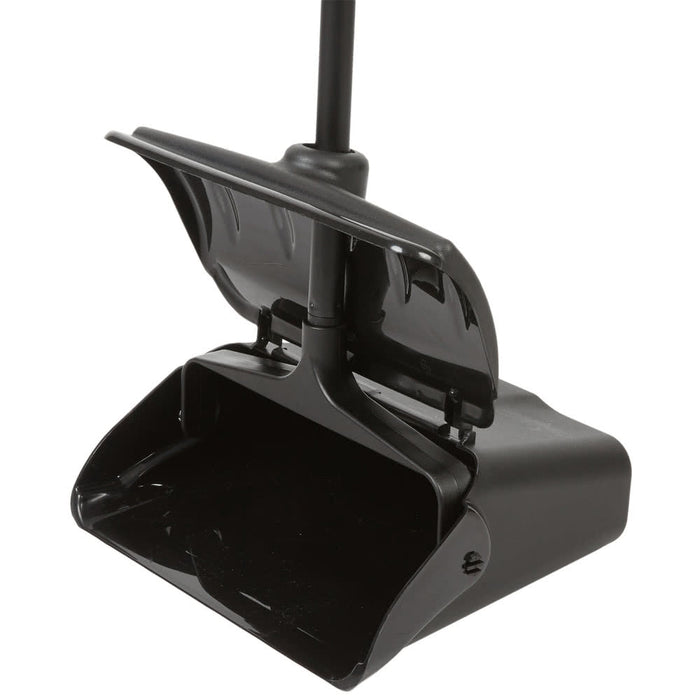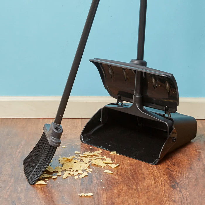 Use the lobby dustpan to quickly sweep in and remove minor messes when they happen. This is an efficient and discreet way to clean without disrupting business. The wide, 30cm hopper is great for picking up large messes with ease. To use, simply place the dustpan on any surface and sweep your debris into it with the broom. Its durable plastic construction will stand up to constant use and is easy to clean. Plus, the 70cm handle is integrated right into the lid to ensure the hopper stays covered during transport and opens up when set on the floor!